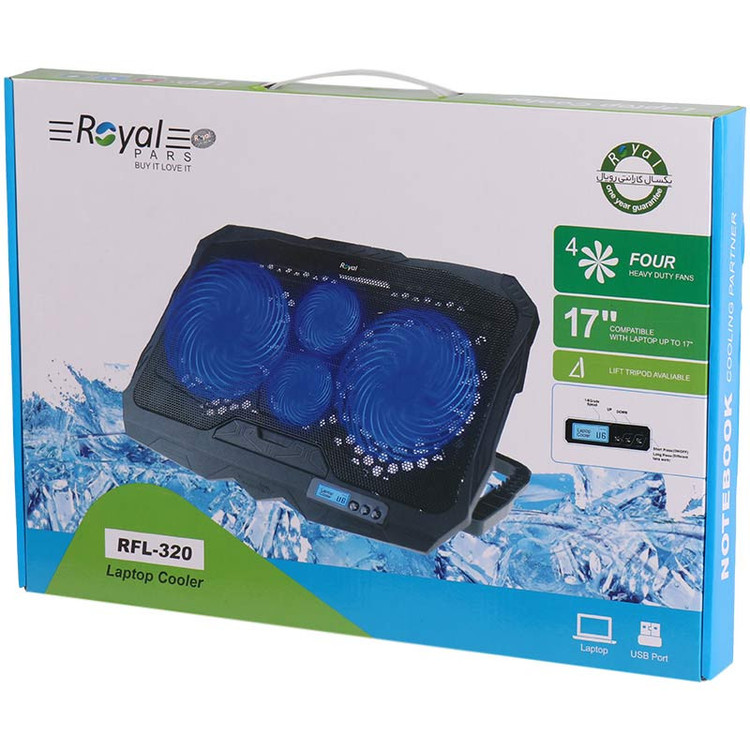 دارای 4 عدد فن خنک کننده دو عدد 140 میلی متری و دو عدد 70 میلی متری کم صدا، مناسب لپتاپهای تا 17 اینچ
