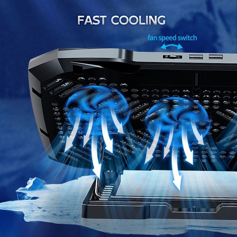 دارای یک عدد گیره نگهدارنده لپ تاپ به منظور جلوگیری از سرخوردن لپ تاپ، به همراه استند موبایل