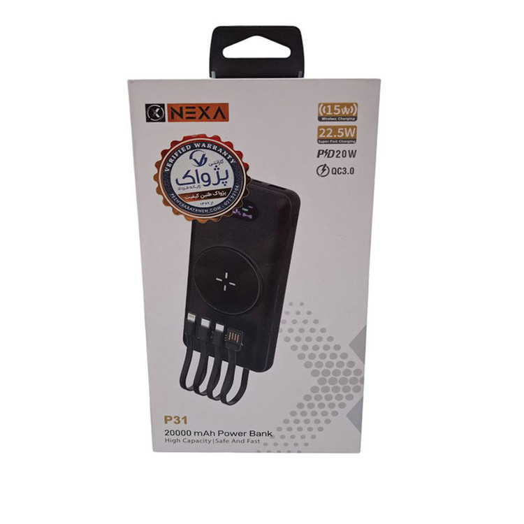پاوربانک وایرلس 22.5 وات برند نکسا مدل P31 20000mAh